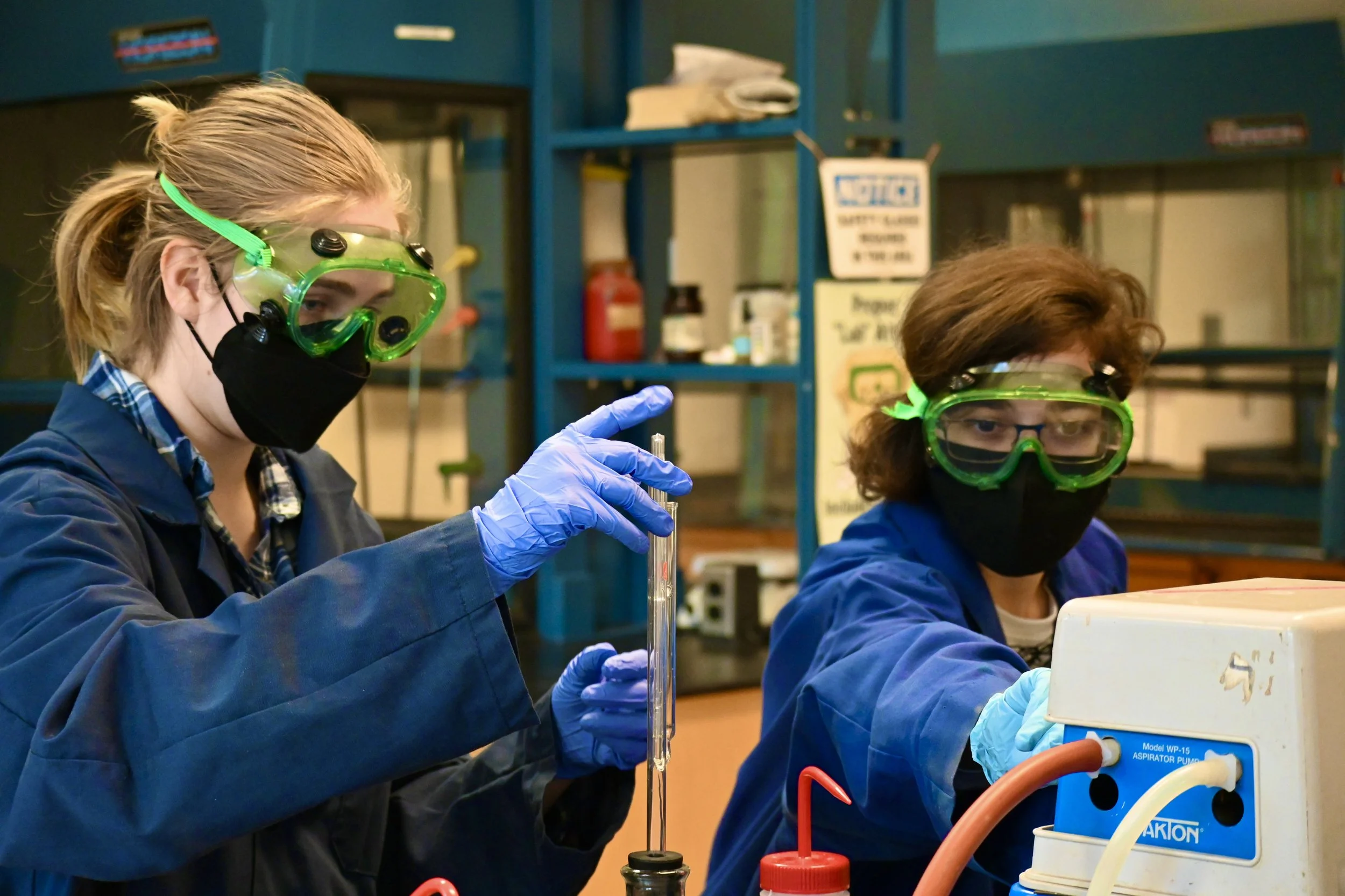 Ev Mauger and Patrizia Mombille, of Chemistry Crew, working in the instrument lab.