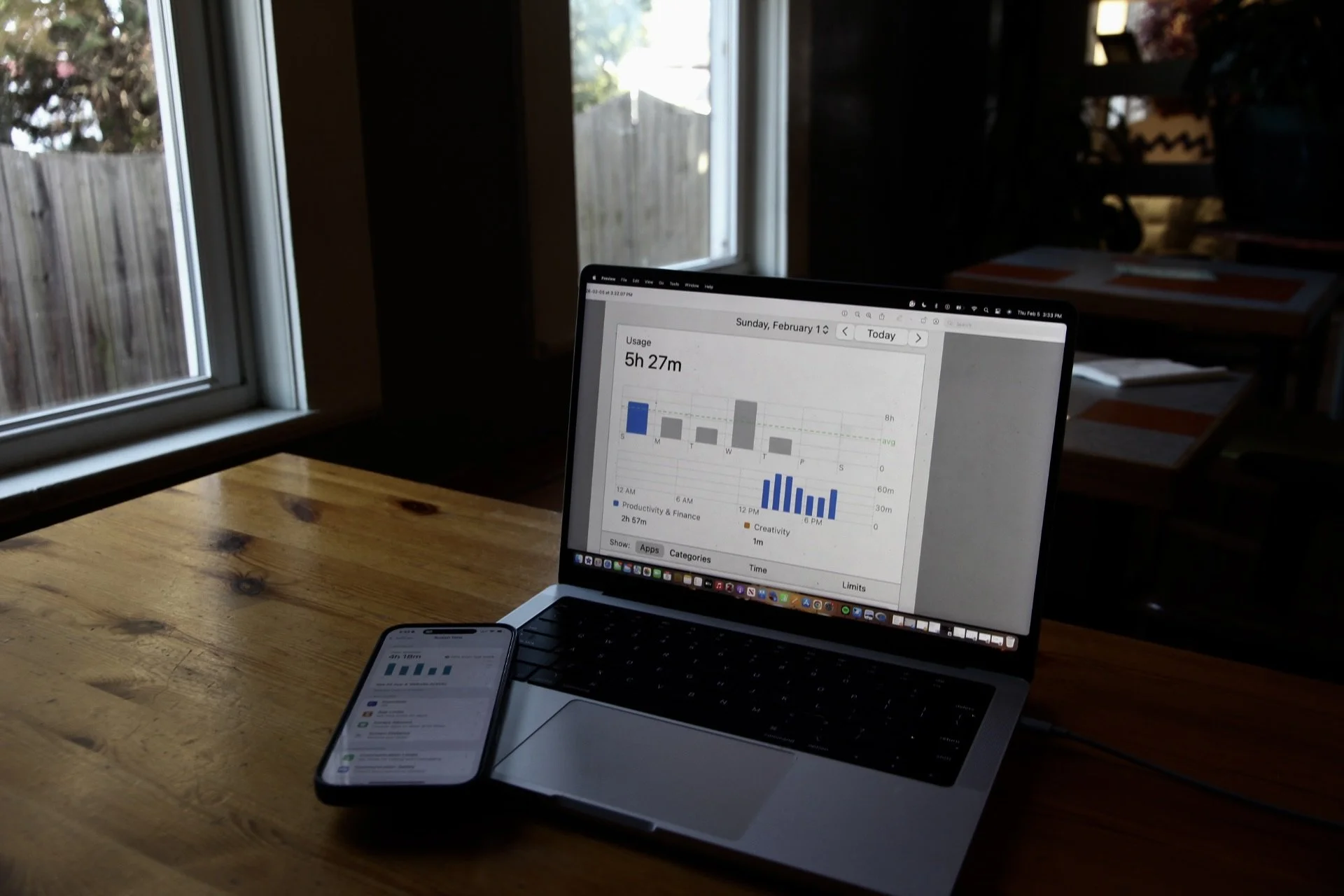 Image of a screentime report on a student’s laptop and cellphone at BattleCat Coffee Bar on Feb. 5, in Asheville N.C. (Echo/Vivian Bryan).
