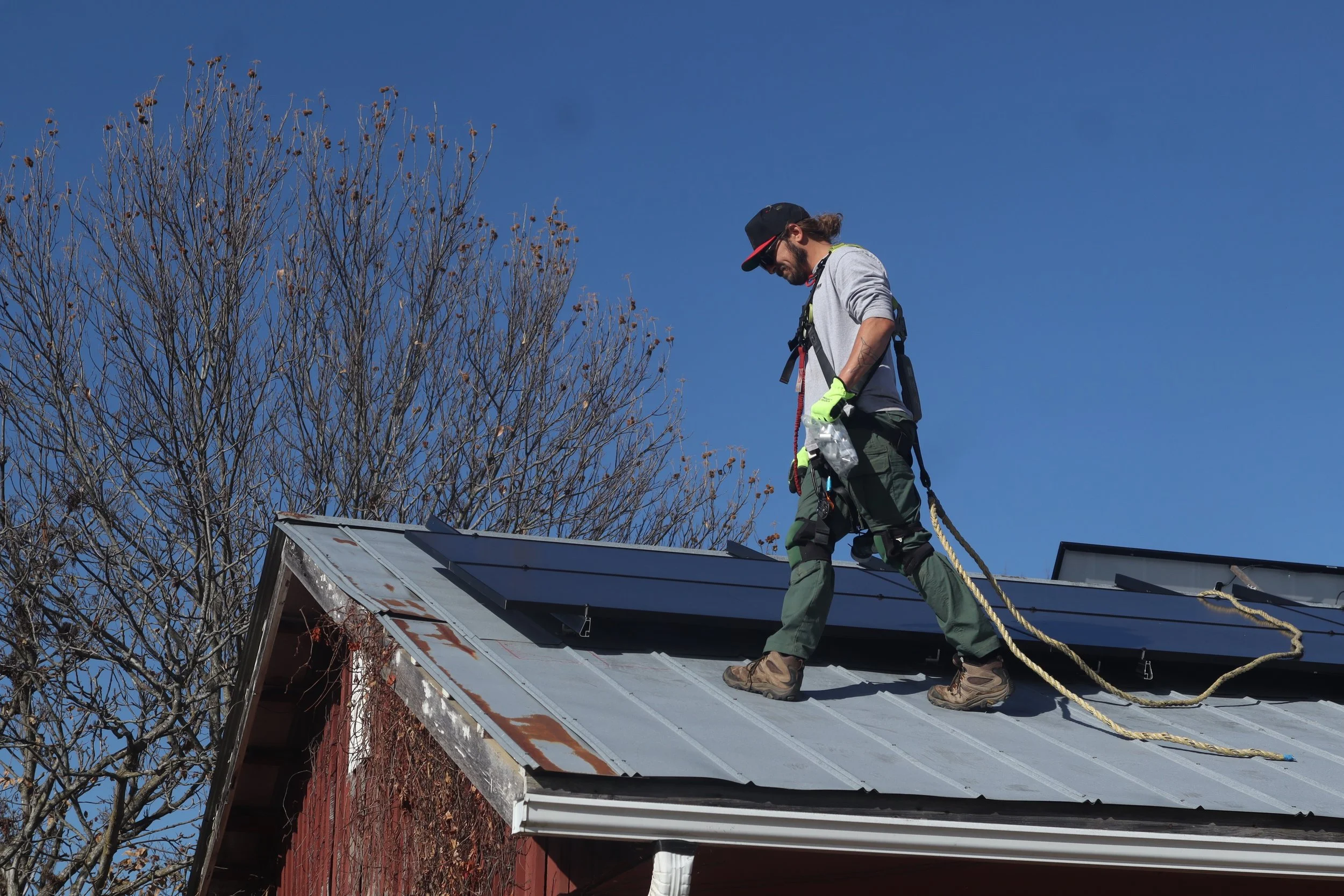 Kelly Gloger is also part of the critical services micro group. He was on the roof installing the panels as well as teaching students how to do so throughout the process. He is the lead salesman at SolFarm.