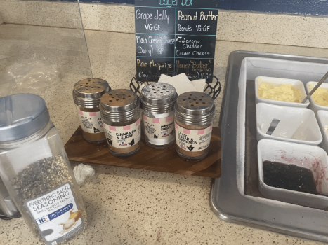 We all know that Gladfelter’s food tastes better once it’s seasoned. Now you can add powdered sugar or cinnamon powder to your morning toast over by the toaster station. There's also cocoa powder over by the coffee to make hot chocolate, and options at the Crusted Corner to spice up your pizza.
