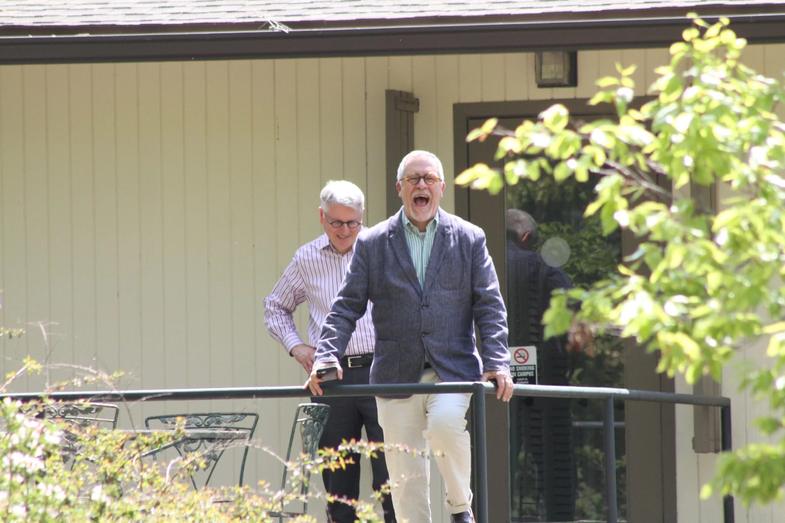 Damián J. Fernández cheers for Gay Earth Day at Warren Wilson College in Swannanoa, N.C. on April 24, 2026. (Echo/Vivian Bryan)