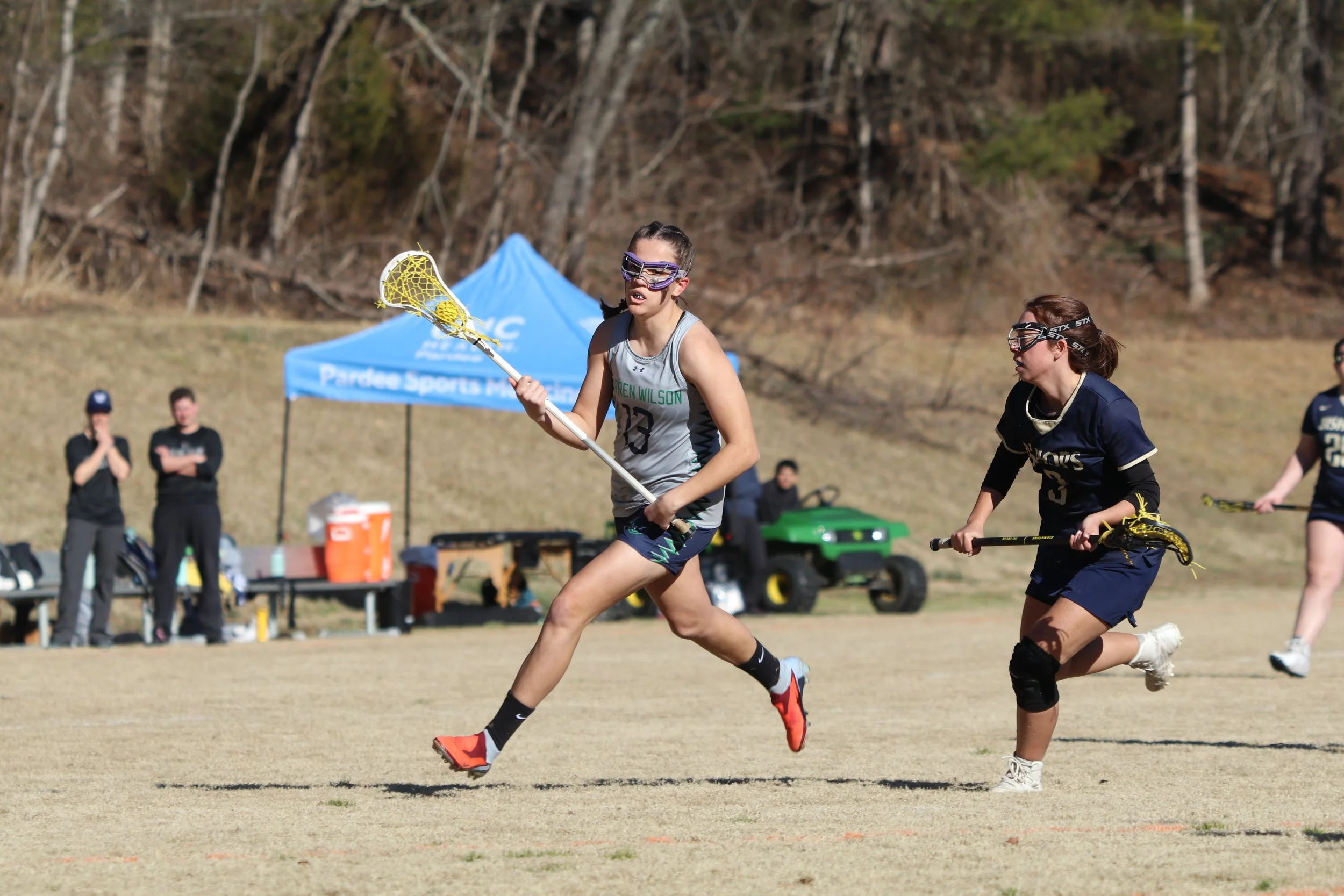 Callie Aerni runs across the field at the WWC vs. N.C. Wesleyan game on Feb. 13, 2026, in Swannanoa, N.C. (WWC Athletics)