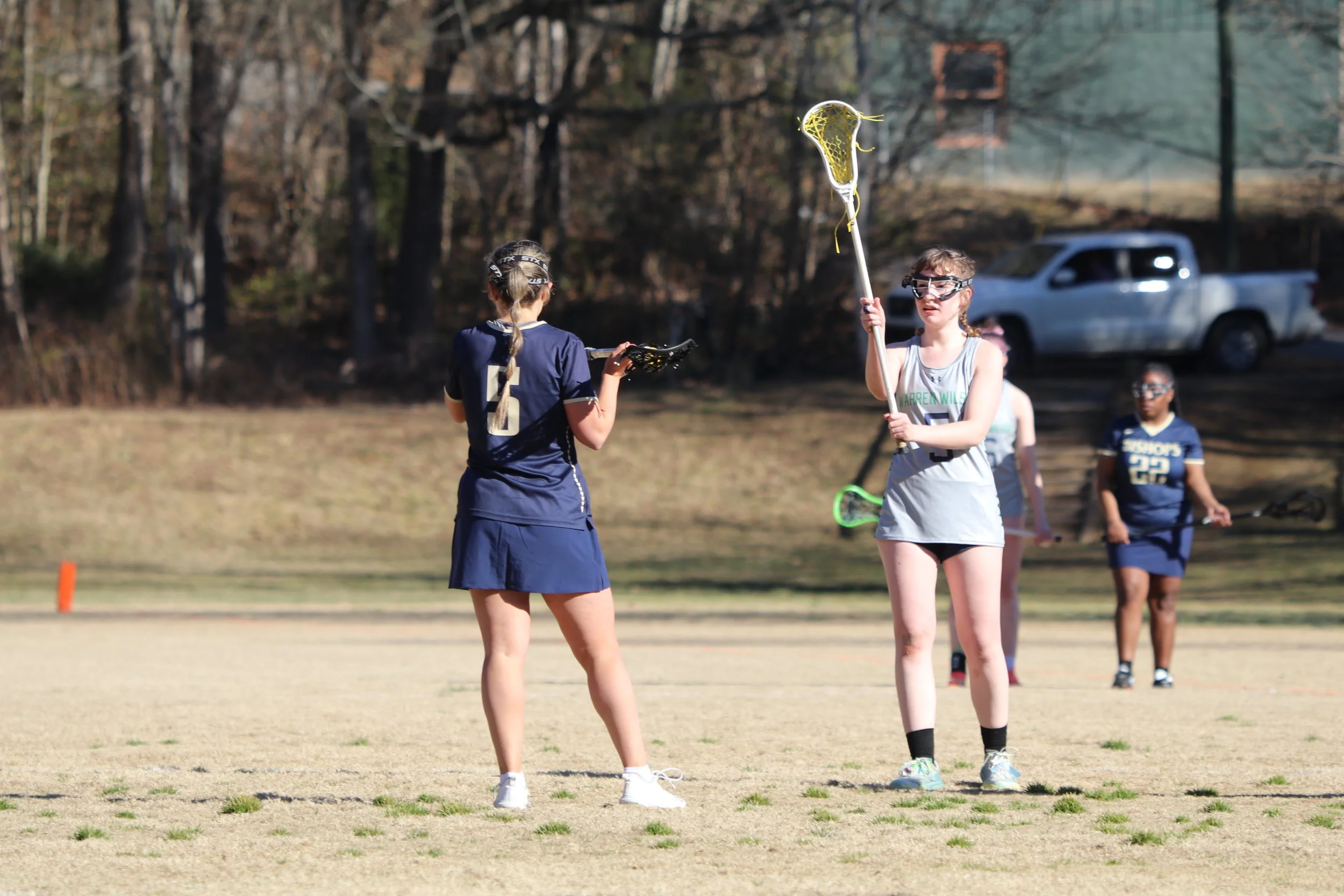 Vera Dorsey holds her crosse aloft during the WWC women’s lacrosse game against N.C. Wesleyan on Feb. 13, 2026, in Swannanoa, N.C. (WWC Athletics)